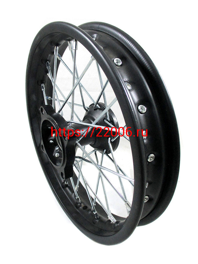 - Диск колеса передний стальной на спицах 1.40 - 12" цвет черный, дисковый тормоз ось 15мм Питбайк в Краснодаре недорого