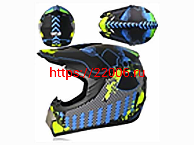 - Мотошлем VIRTUE MD-905 Кросс черный матовый с сине-салатовым рисунком (S) в Краснодаре недорого