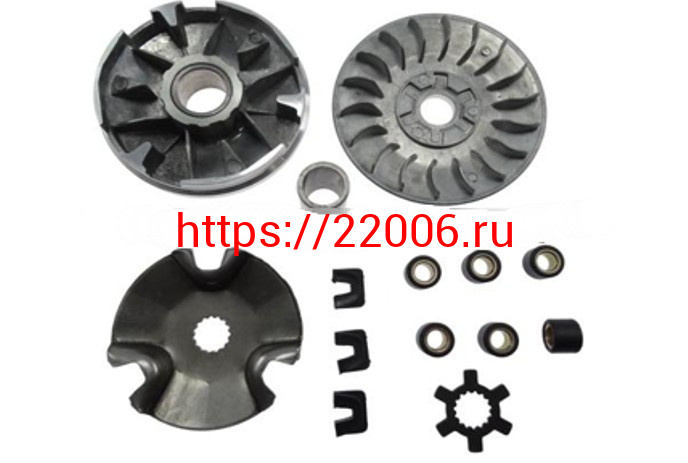 - Вариатор Yamaha JOG-90 в сборе (ролики, наружный шкив, палец, шайба наружного шкива) в Краснодаре недорого