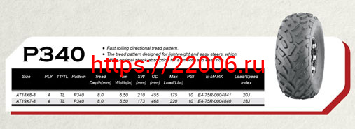 - Покрышка ATV 8" 18 х 8.00 - 8 (Р340) без камеры, WANDA в Краснодаре недорого